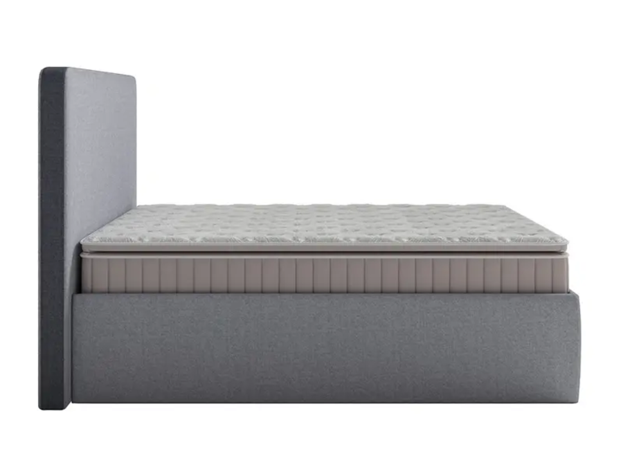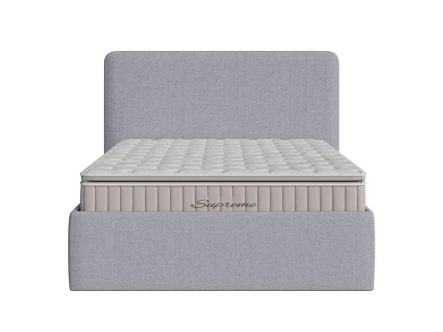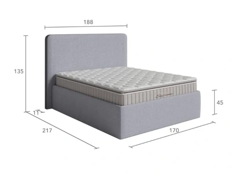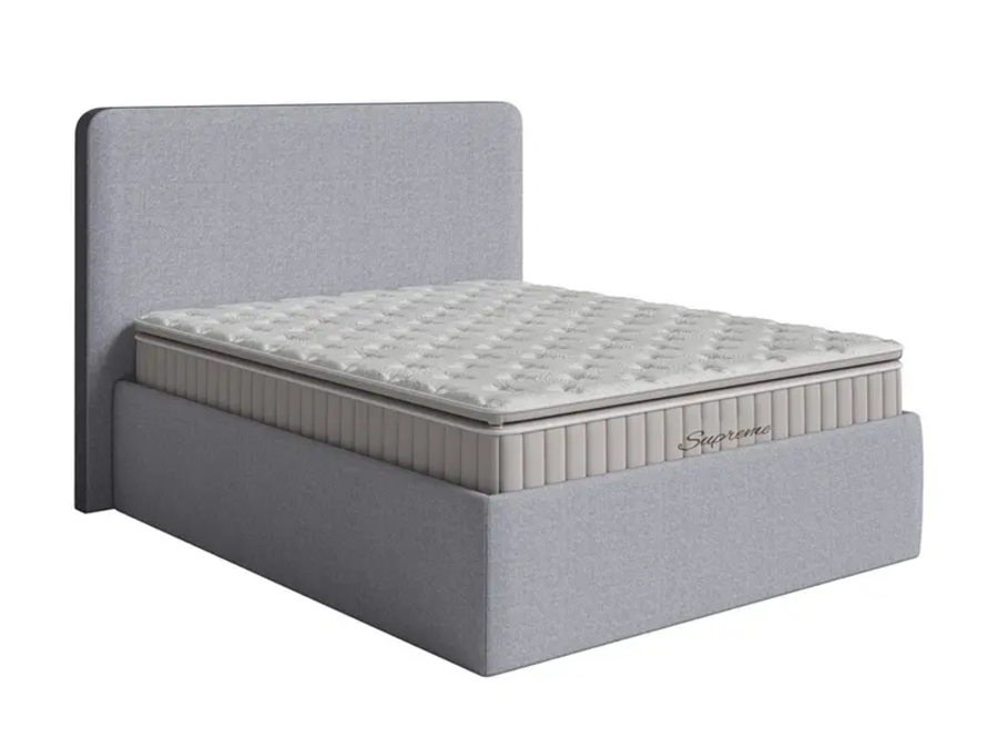 Увеличенная высота подчёркивает объём и делает силуэт более солидным. Мягкая обивка смягчает очертания, благодаря чему большая кровать не выглядит тяжёлой и гармонично вписывается в интерьер.