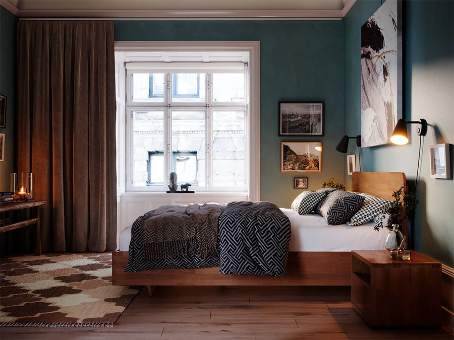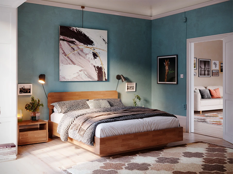 - Парящий царговый пояс визуально увеличивает пространство спальни, добавляет «воздуха» в интерьере.