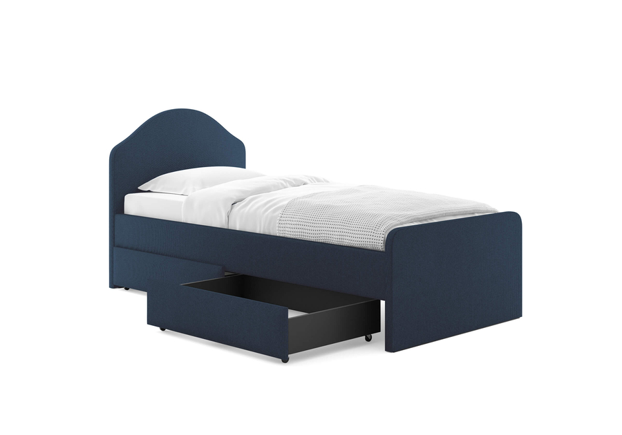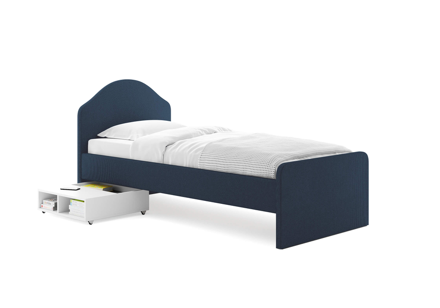 Да, вы можете выбрать ткань и оттенок обивки и заказать выкатные ящики  в том же материале. Это создаёт цельный, гармоничный образ кровати и помогает сохранить единство стиля спальни.